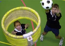 El korfbal és un esport jugat entre dos equips que cerquen introduir una pilota dins d'una cistella.